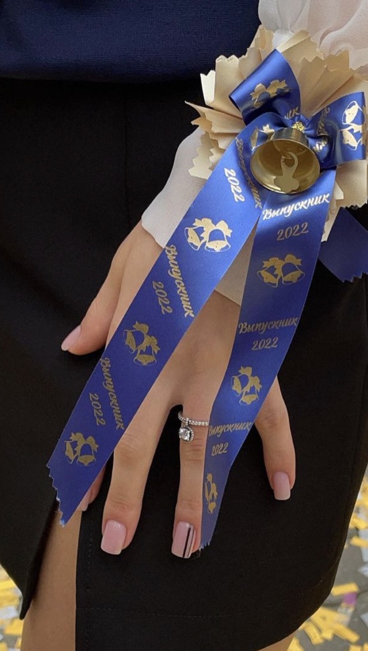 Аксессуар бутоньерка на выпускной для выпускника с колокольчиком крепление на руку сатиновая лента
